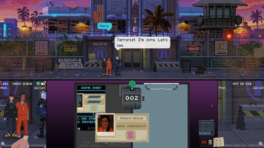 The game is separated into three acts, each act focusing on one of Eduardo's friends: Kevin, Malik, and Mari, every bit they travel beyond a broken nation, which is suitably named United States of America, to get all of his documents. You can expect this game to have on many political issues, such every bit immigration, deportation, and racism. Although many gamers encourage developers to stay away from politics, I'm very happy No More Robots didn't listen to these people. When Eduardo is beingness processed, you play as a Martyr member, checking in new criminals or every bit they label them, terrorists. They'll hand you a bill of fare that tells you their criminal offence. Small things like protesting, their name, and even being sarcastic have landed them into this labor camp. No one is allowed to exist themselves. Liberty is something this version of America has long forgotten.